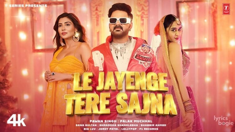 Le Jayenge Tere Sajna Lyrics in Hindi: ले जायेंगे तेरे सजना, This Hindi song is sung by Pawan Singh and Palak Muchhal & released by T-Series record company. Music was composed by Shabbir Ahmed, with lyrics written by Shabbir Ahmed. The song of “Le Jayenge Tere Sajna” features Pawan Singh, Sana Sultan and Shraddha Shanklesha in the video, directed by Lollypop.
