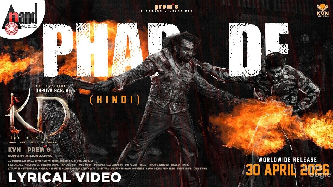 फाड़ दे | Phad De Hindi Lyrics, is a Hindi song from the film KD: The Devil, directed by Prem and stars Dhruva Sarja, Sanjay Dutt, Shilpa Shetty, Reeshma Nanaiah and Nora Fatehi. Music composed by Arjun Janya, the song is sung by Shankar Mahadevan, with lyrics penned by Raqueeb Alam.