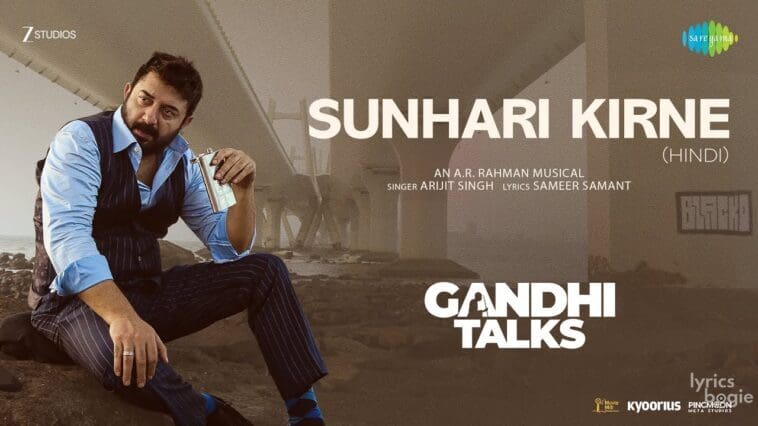 Sunhari Kirne Lyrics in Hindi (“सुनहरी किरने” हिंदी में) from the film Gandhi Talks, starring Vijay Sethupathi, Arvind Swamy, Aditi Rao Hydari and Siddharth Jadhav in a lead role. The Hindi Playful song is composed by A R Rahman and vocals were given by Arijit Singh, while lyrics of “Sunhari Kirne” were penned by Sameer Samant.